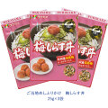 | 商品説明 | 梅の名産地・和歌山(紀州)に伝わる「梅しらす丼」 をイメージしたふりかけです。 さわやかな梅の風味がしらすの旨味を引き立てます。 |